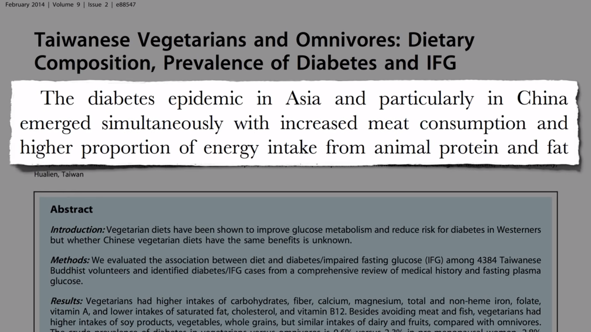 Traditionell hatten asiatische Völker weniger Diabeteserkrankungen, aber in letzter Zeit sind auch diese nicht von der Diabetesepidemie verschont geblieben, was in Verbindung mit erhöhten Konsum von Fleisch, tierischen Protein und tierischen Fett zu stehen scheint. Dazu hat die Verwestlichung auch Fast und Junk Food mitgebracht. Daher wollten die Forscher an der Nationaluniversität nicht nur Typische Vegetarier und Fleischesser vergleichen, sondern nahmen Buddhistische Vegetarier in Vergleich mit Buddhistischen Nichtvegetariern die sich traditionell asiatisch ernährten. Sogar Allesesser ernährten sich überwiegend pflanzenbasierend, mit wenig Fleisch und Fisch, wobei Frauen eine tierische Portion pro Woche aßen und Männer eine tierische Portion alle paar Tage. Das ergibt nur um die 8% des Fleischverzehrs der westlichen Länder, bei Frauen um die 3%.