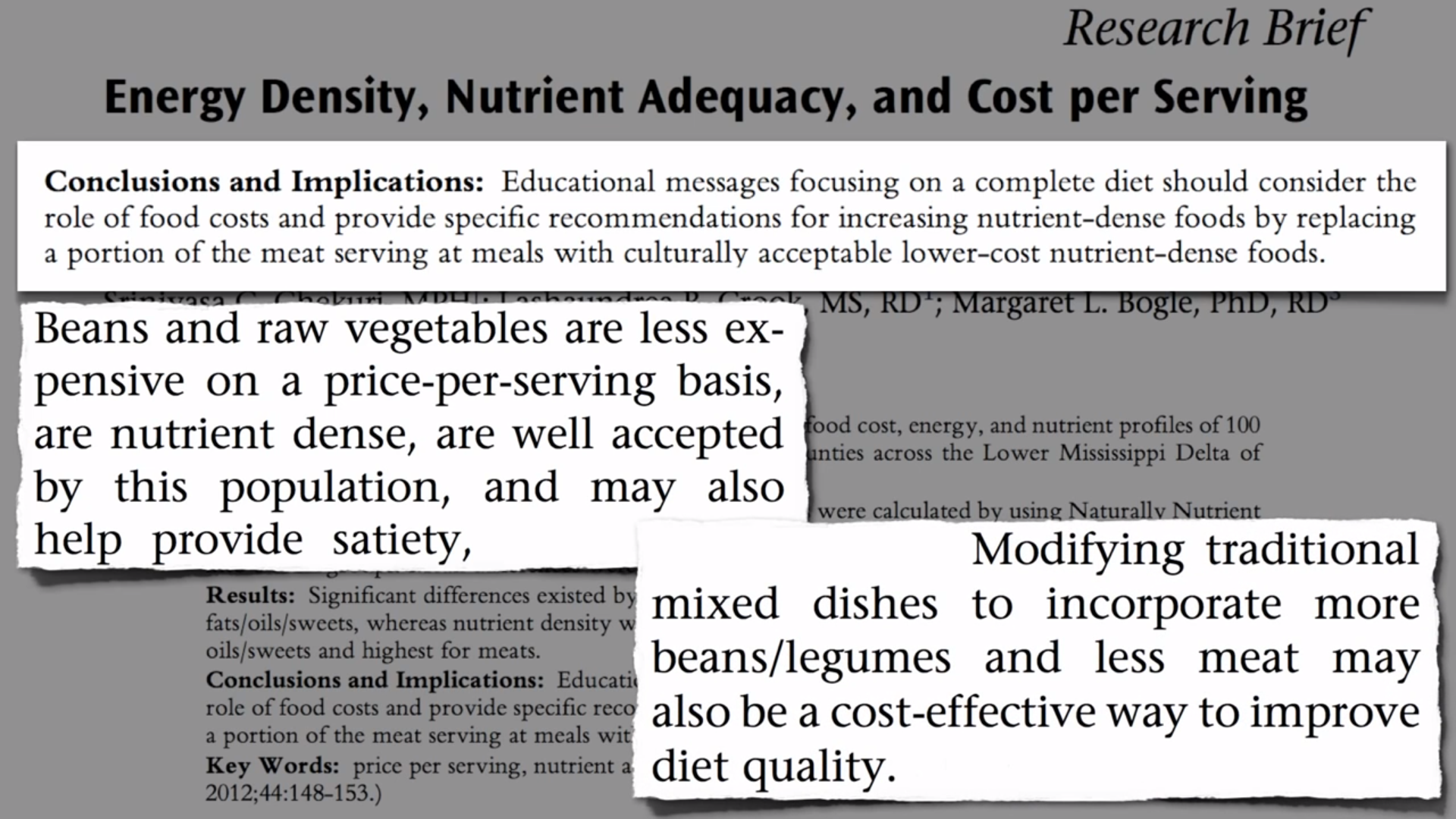 - L. Connell, J. M. Zoellner, M. K. Yadrick, S. C. Chekuri, L. B. Crook, M. L. Bogle. Energy density, nutrient adequacy, and cost per serving can provide insight into food choices in the lower Mississippi Delta. J Nutr Educ Behav 2012 44(2):148 – 153
